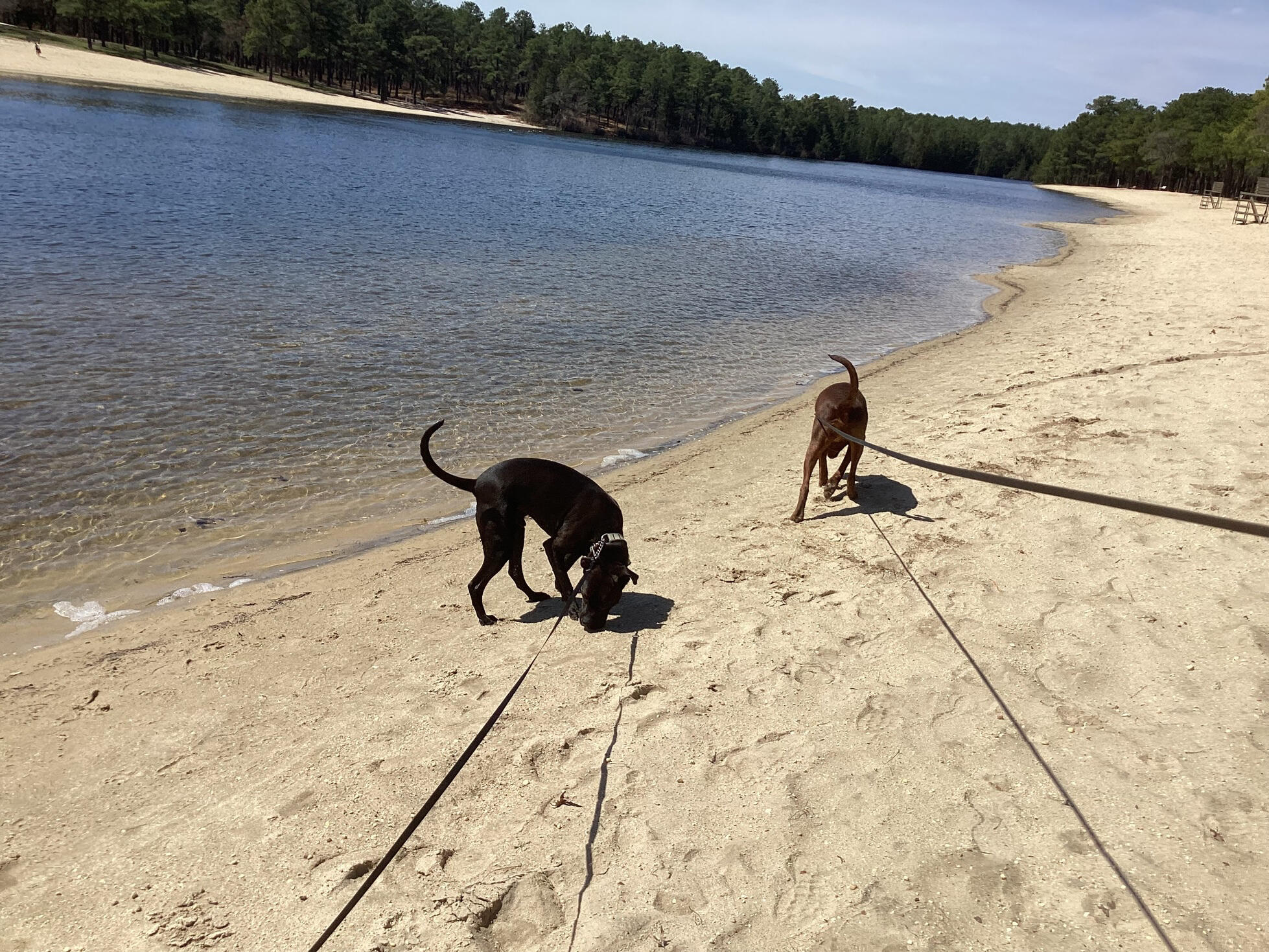 Pampering your pup with peaceful walks through wooded trails, all the way to the lake.